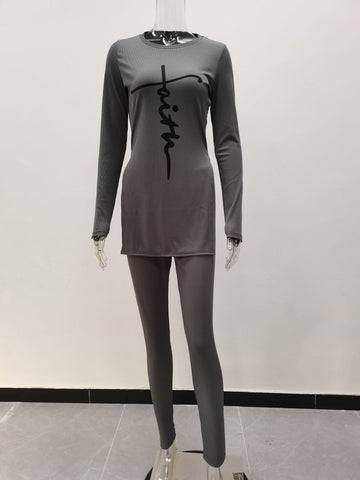 Trend pit strip letter printing two-piece set(AY1414)