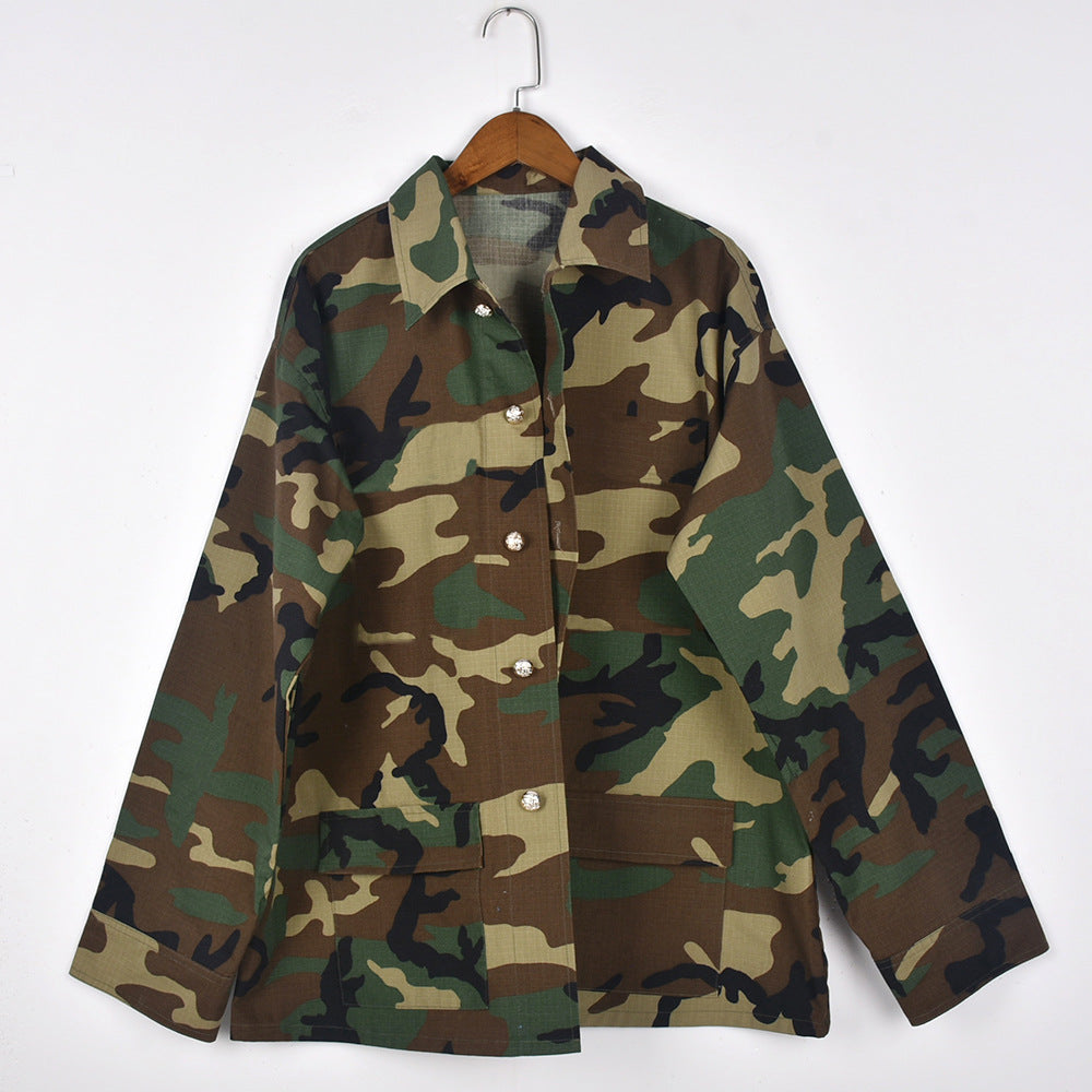 Camouflage Long Sleeve Lapel Jacket(AY2332)