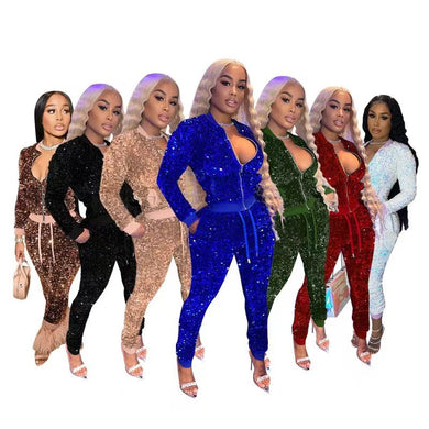 Sexy sequined velvet stitching suit(AY1546)