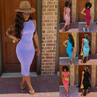 Sexy round neck solid color hip dress(AY1760)