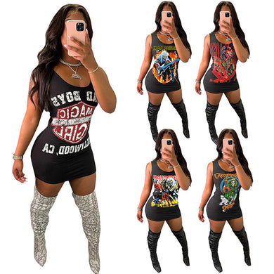 sleeveless letter print casual dress (AH2126)