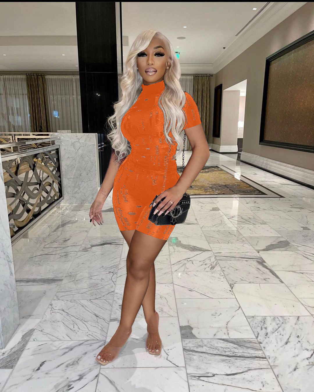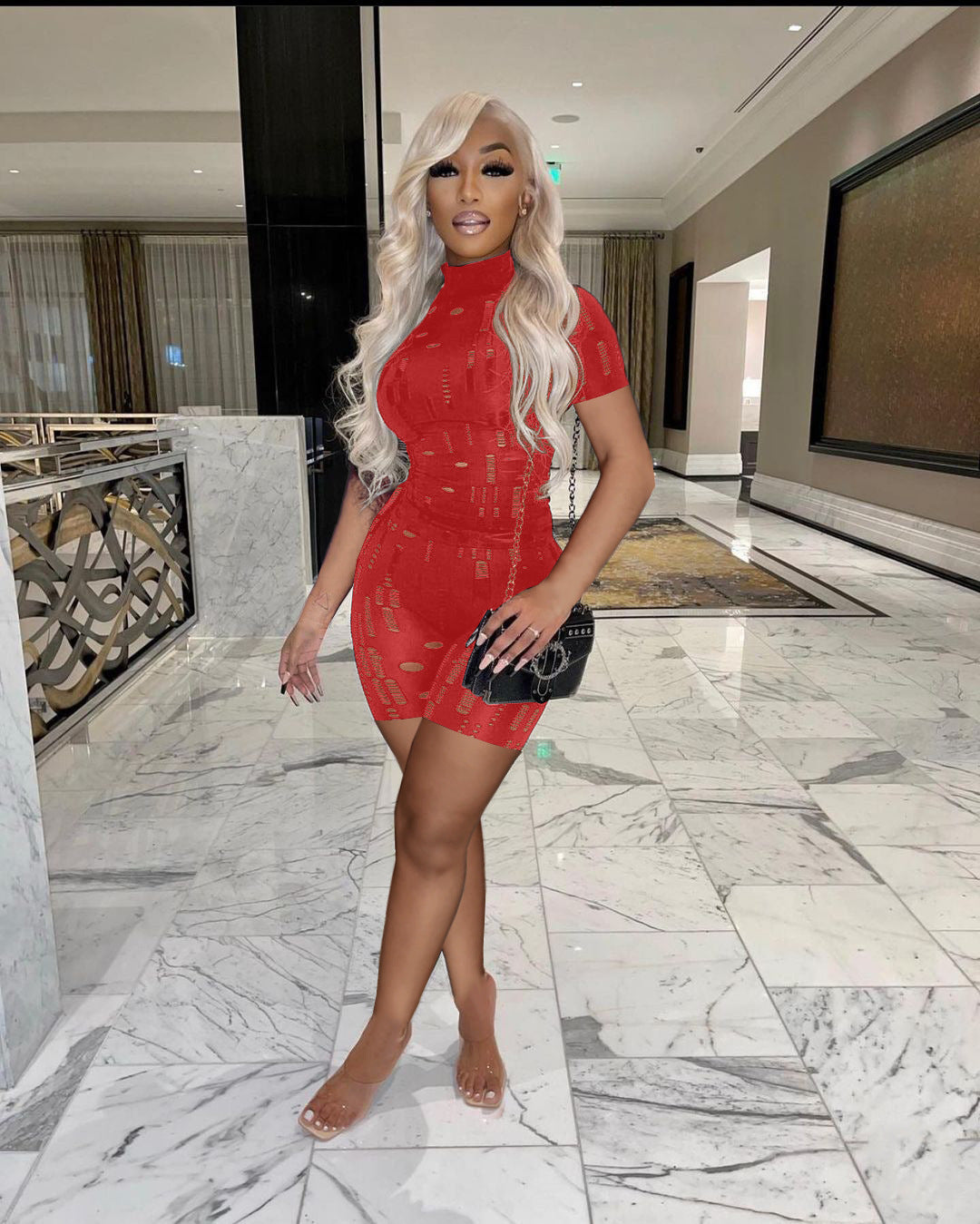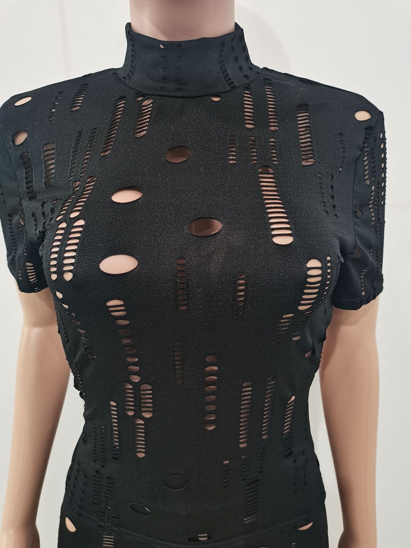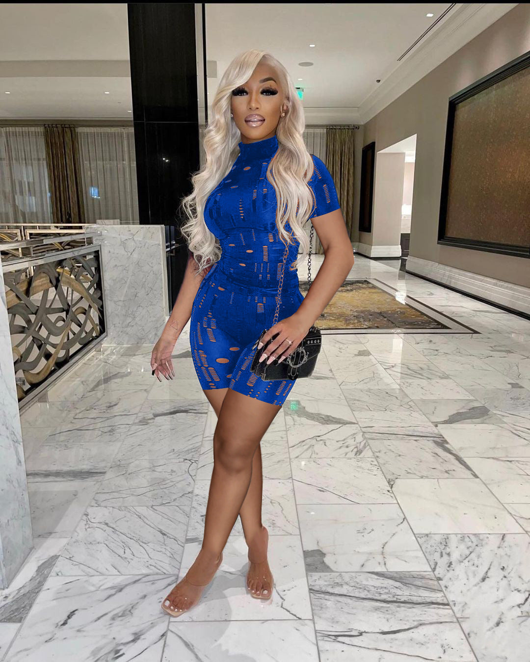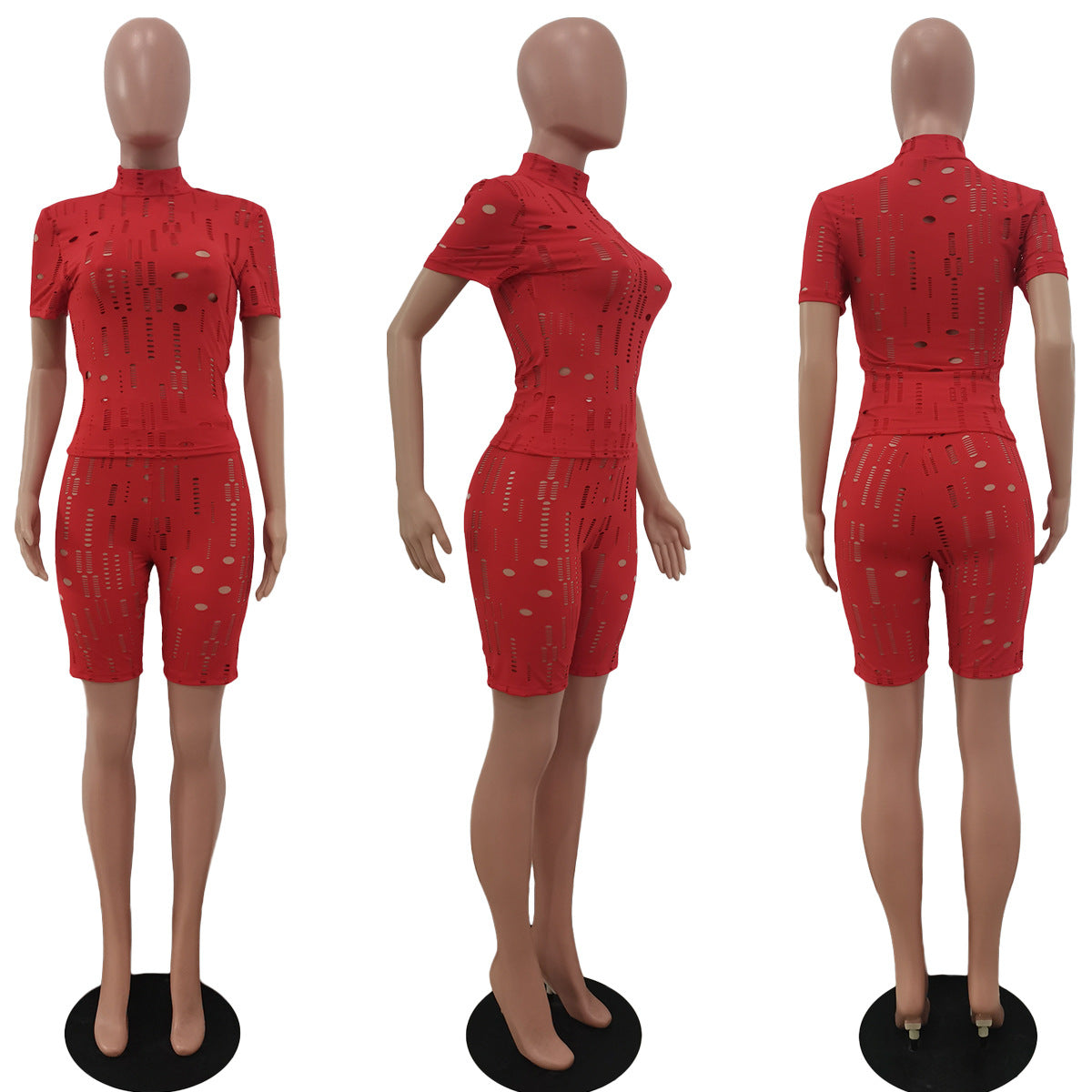 Fashion Ripped Short Sleeve Shorts Two Piece Set(AY1804)