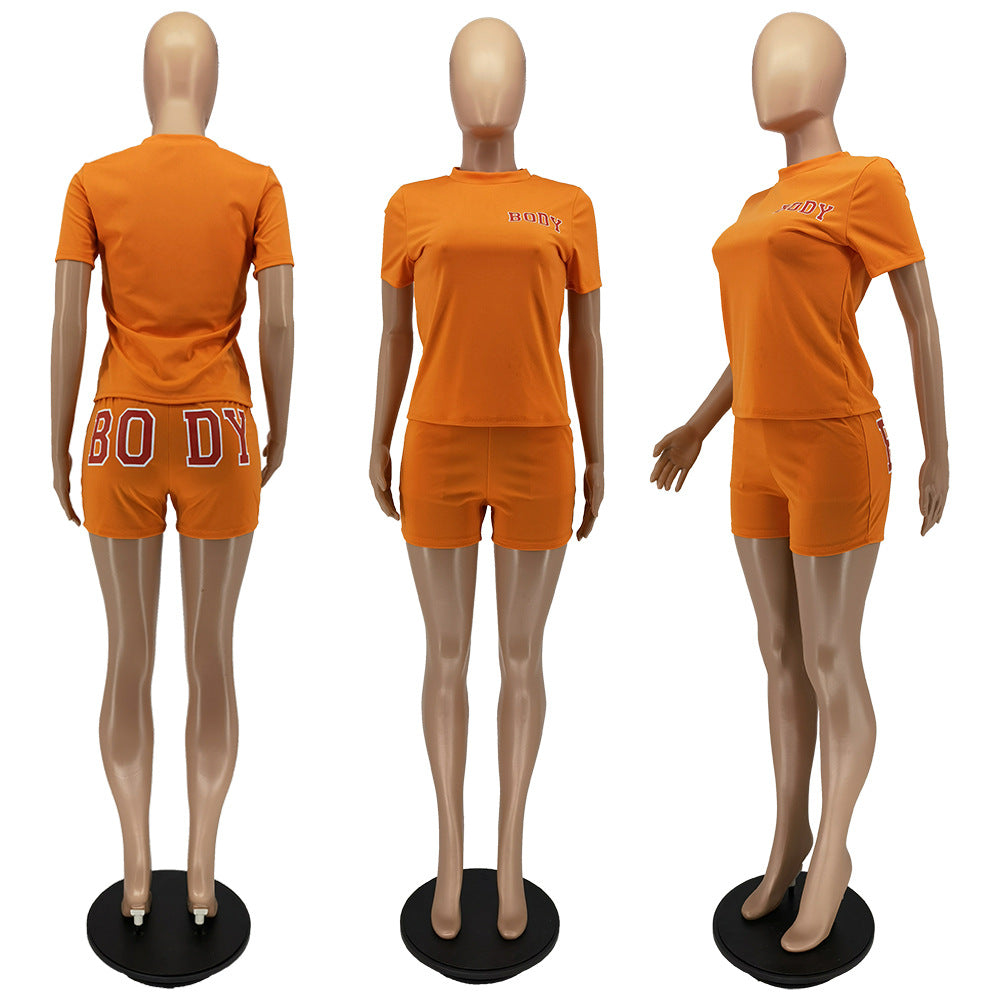 Fashion Solid Color Letter Print Short Suit(AY1758)