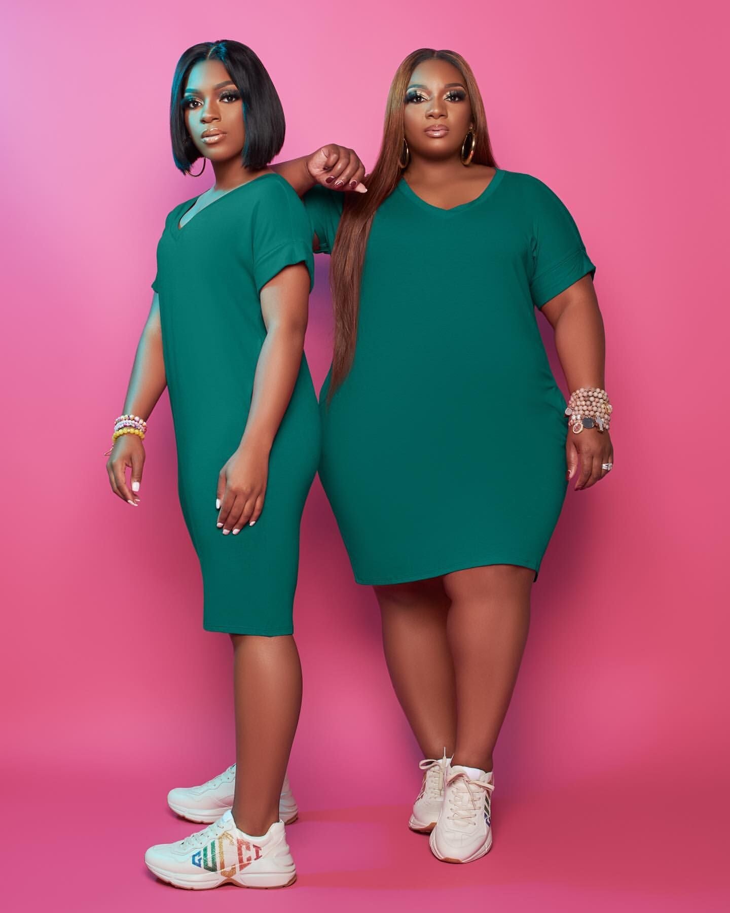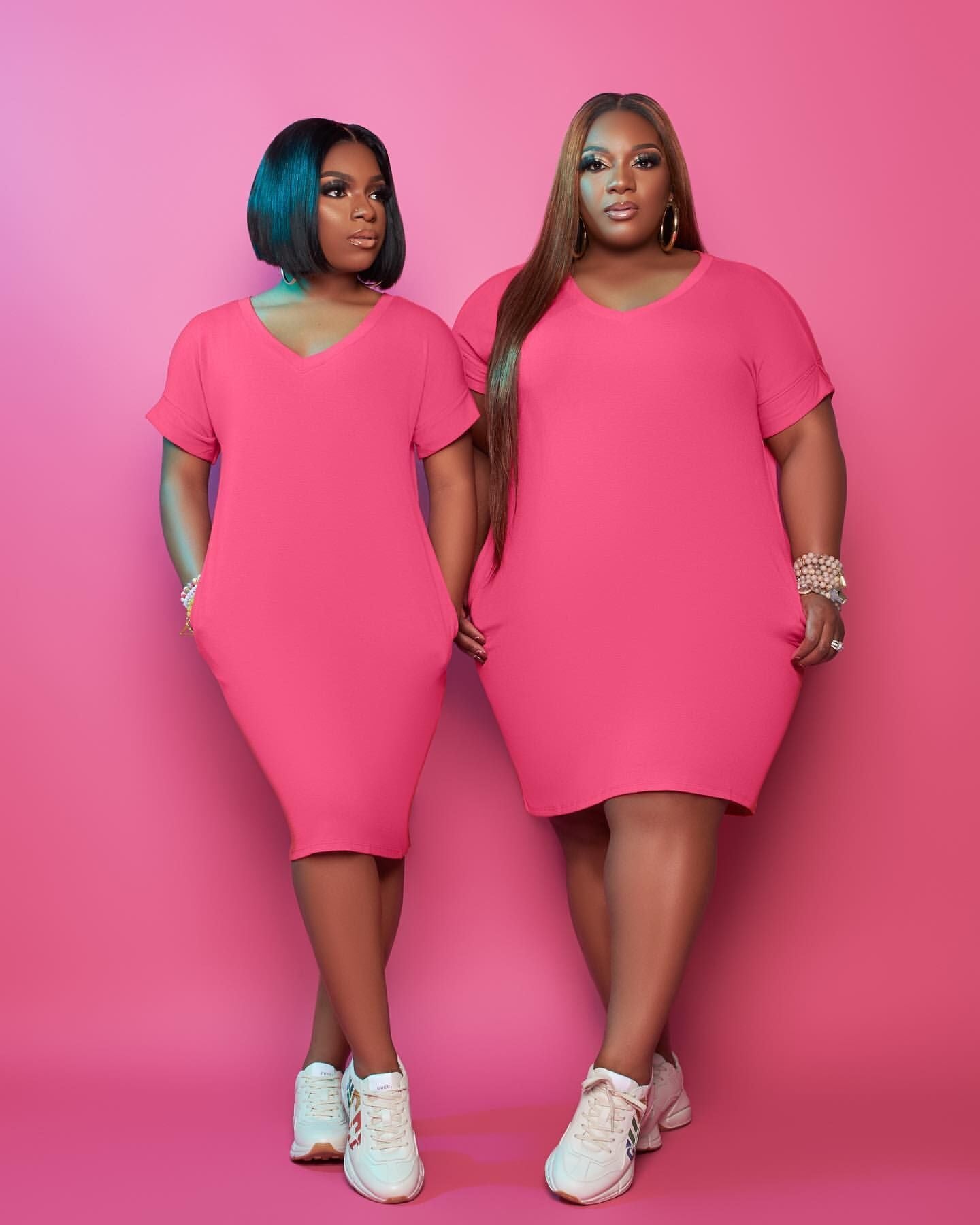 • Load image into Gallery viewer, Plus size round neck solid color dress AY1044