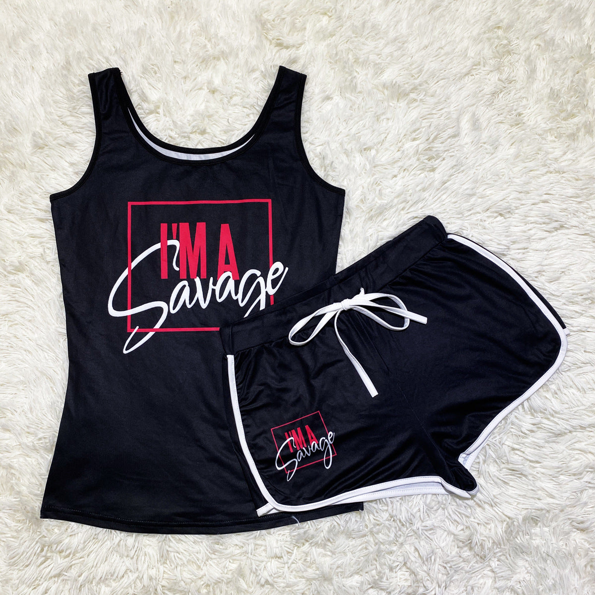 • Load image into Gallery viewer, New print suspender shorts suit AY1050