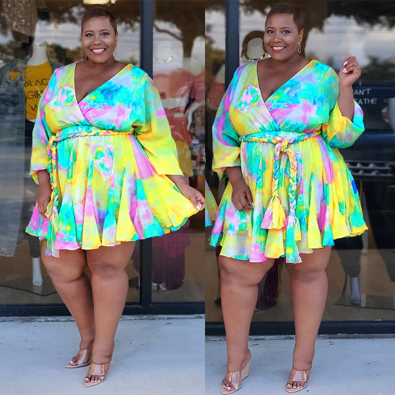 • Load image into Gallery viewer, Printed V-Neck Dress (with Belt) AY1727