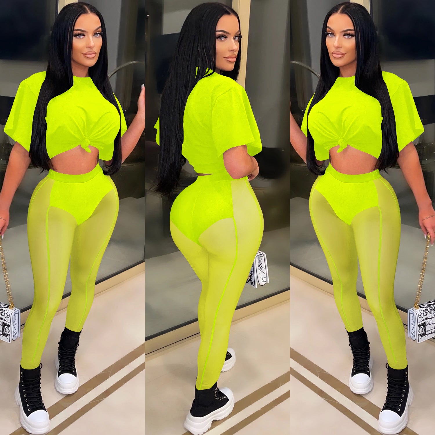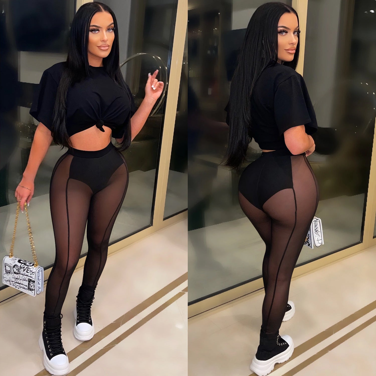 Sexy mesh sheer trousers two-piece set(AY1838)