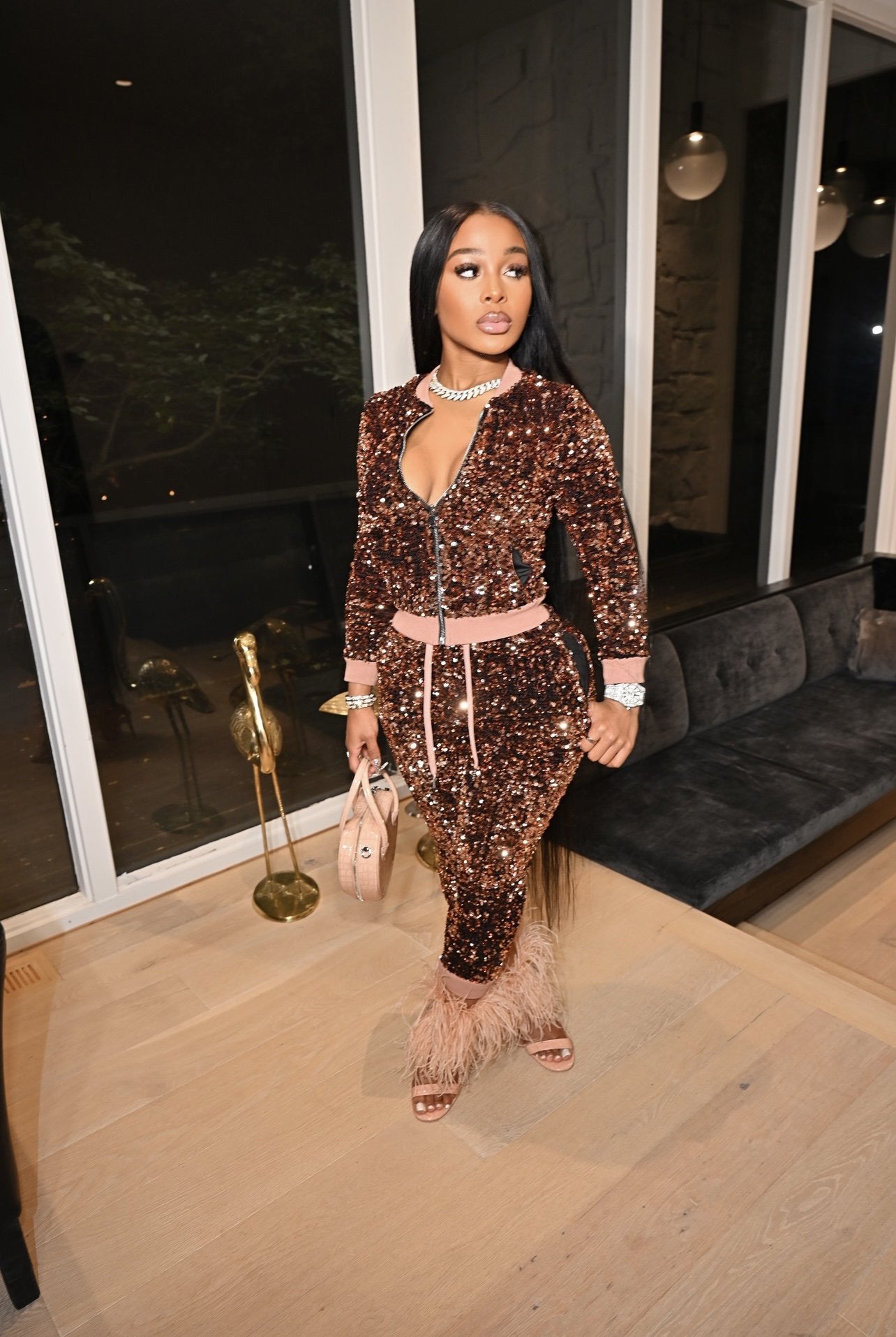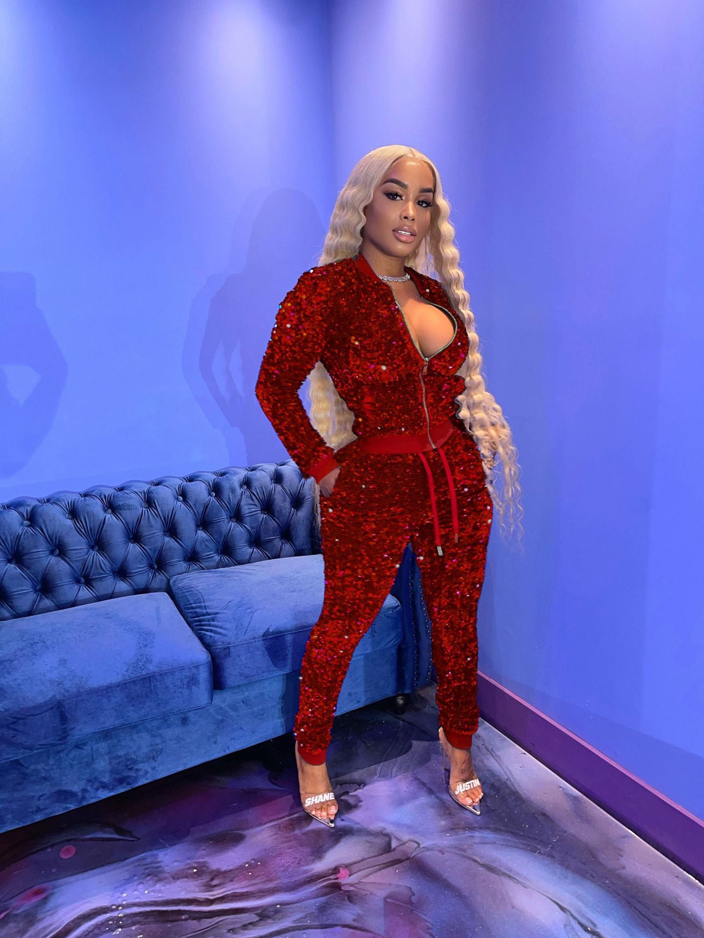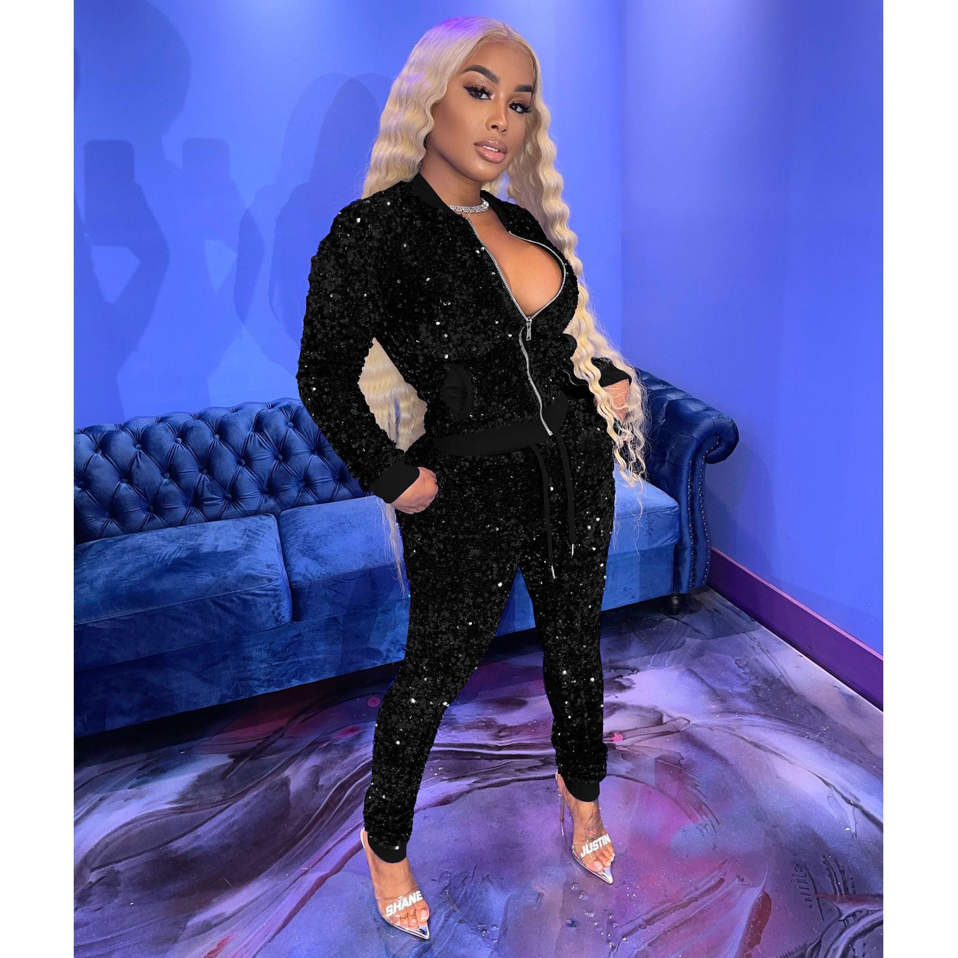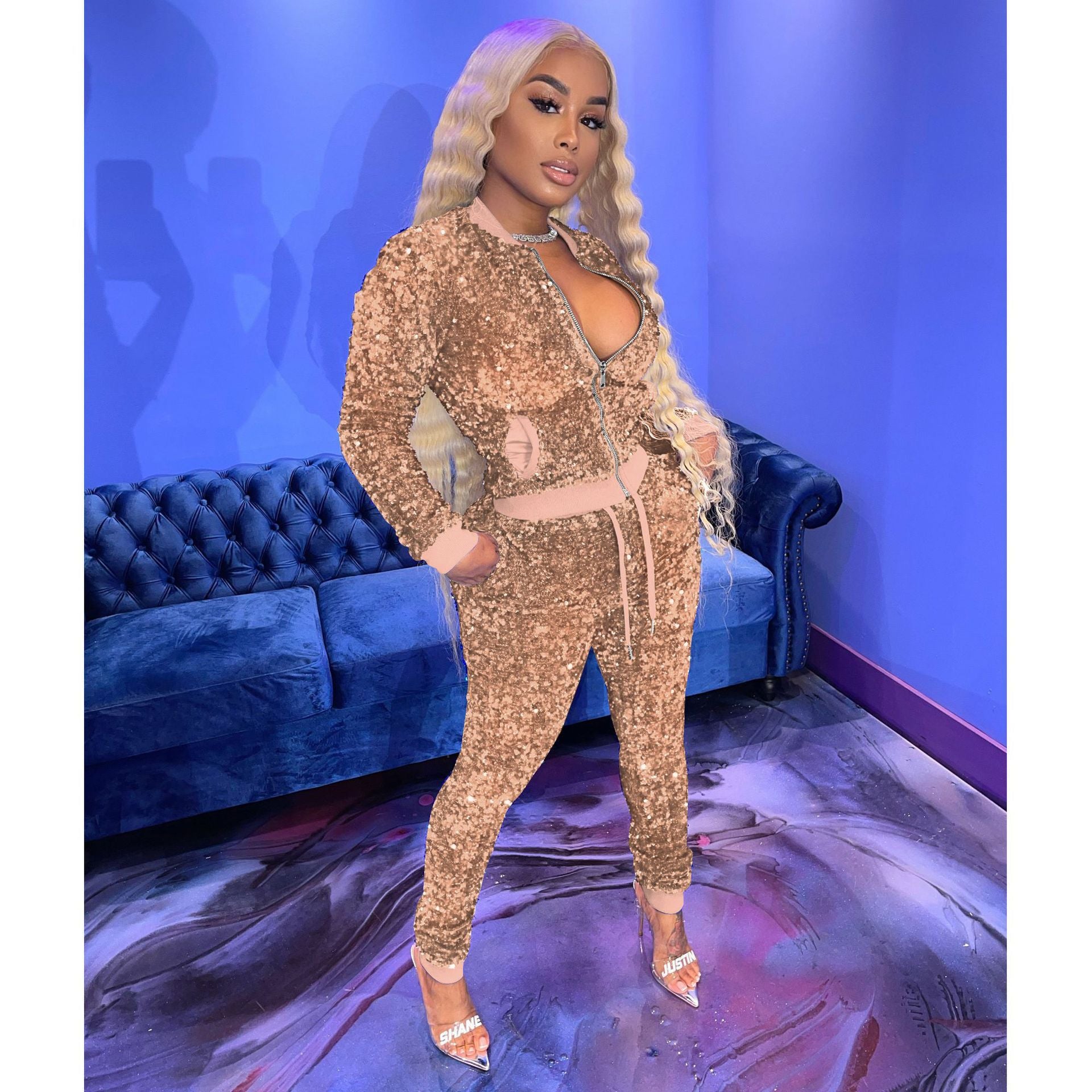 Sexy sequined velvet stitching suit(AY1546)