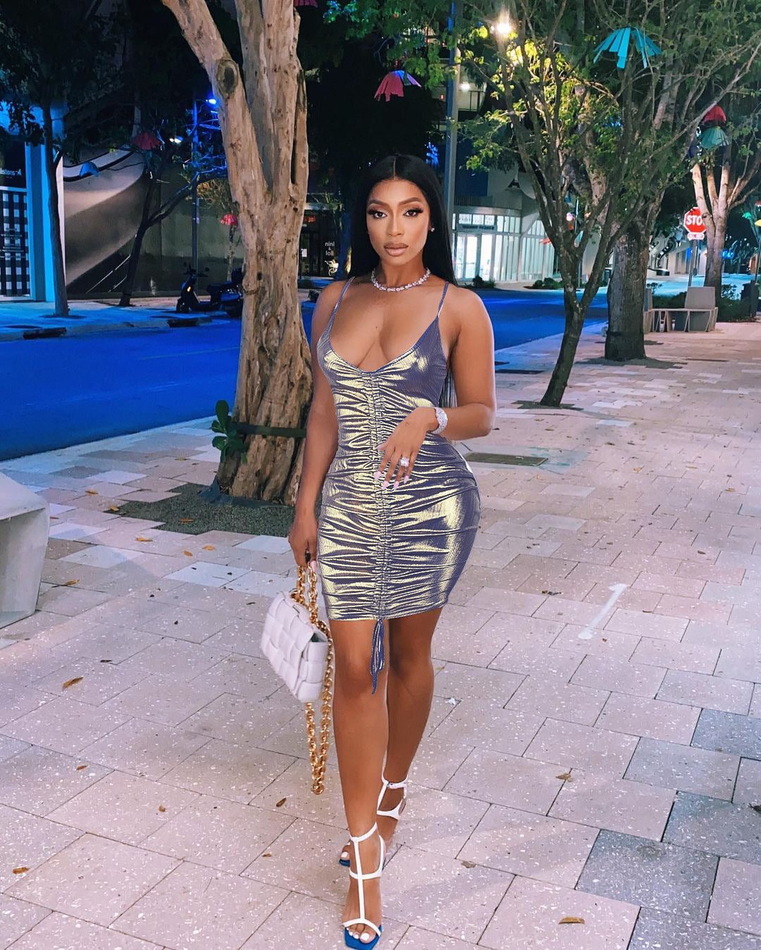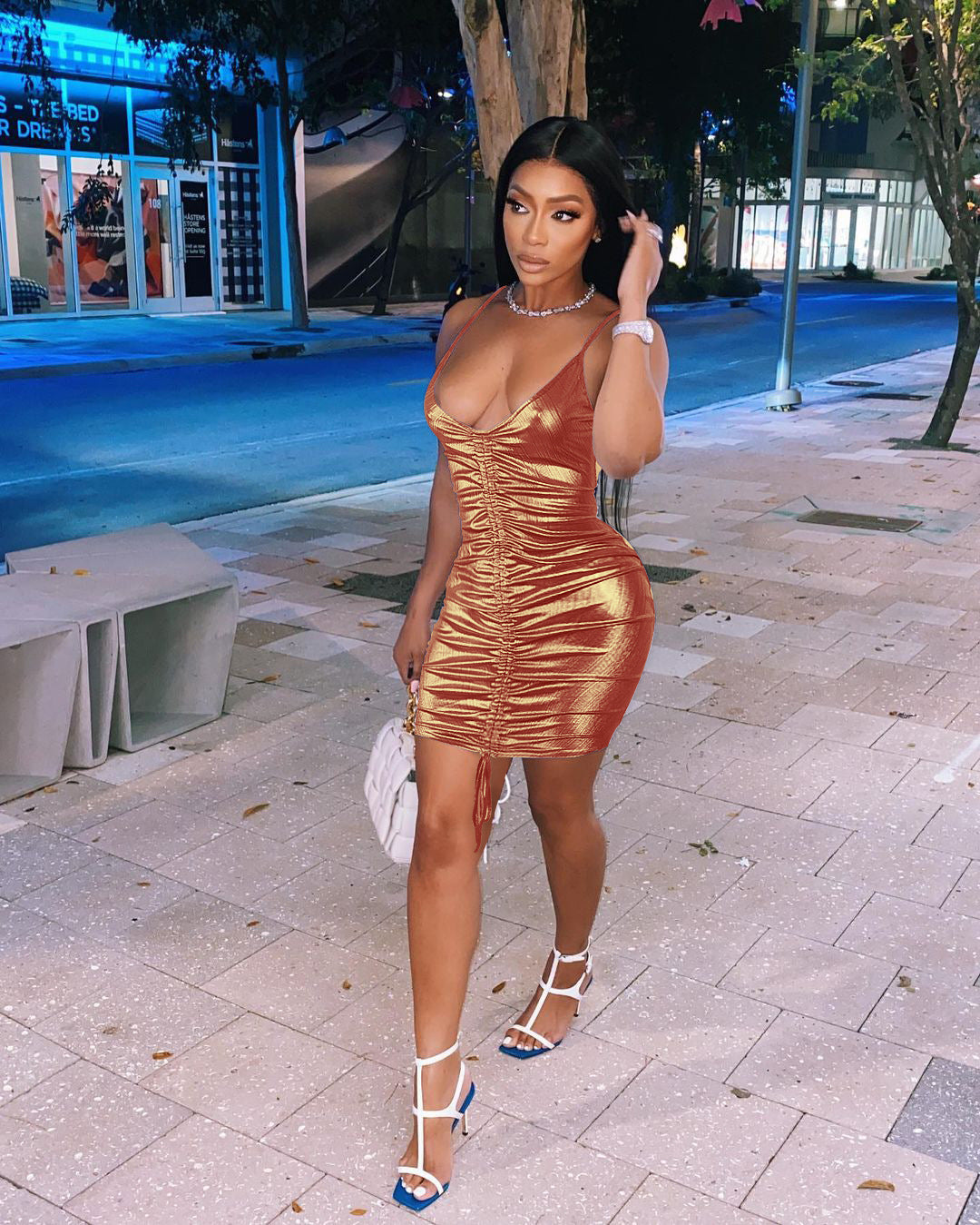 Sexy sling bag hip drawstring dress(AY1524)