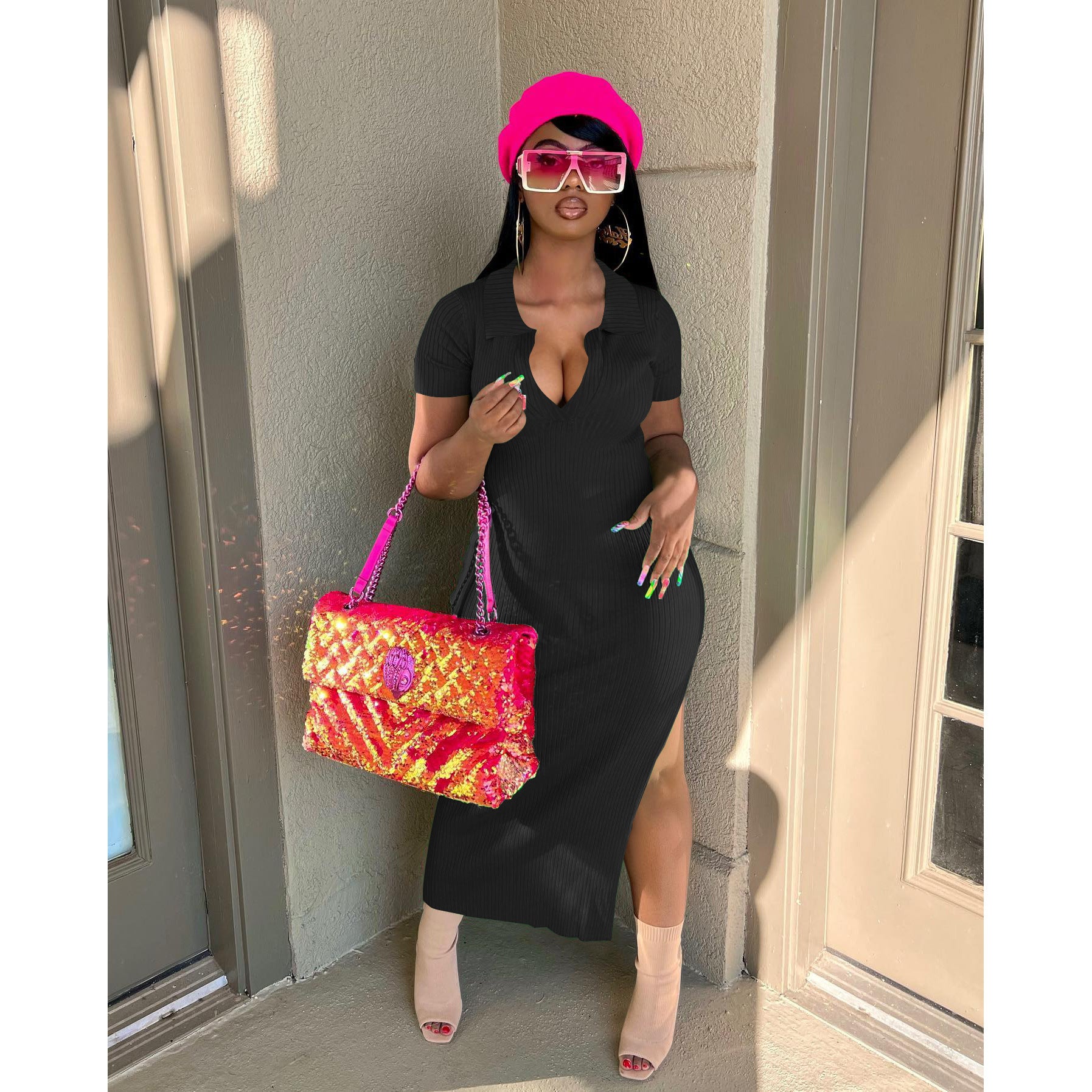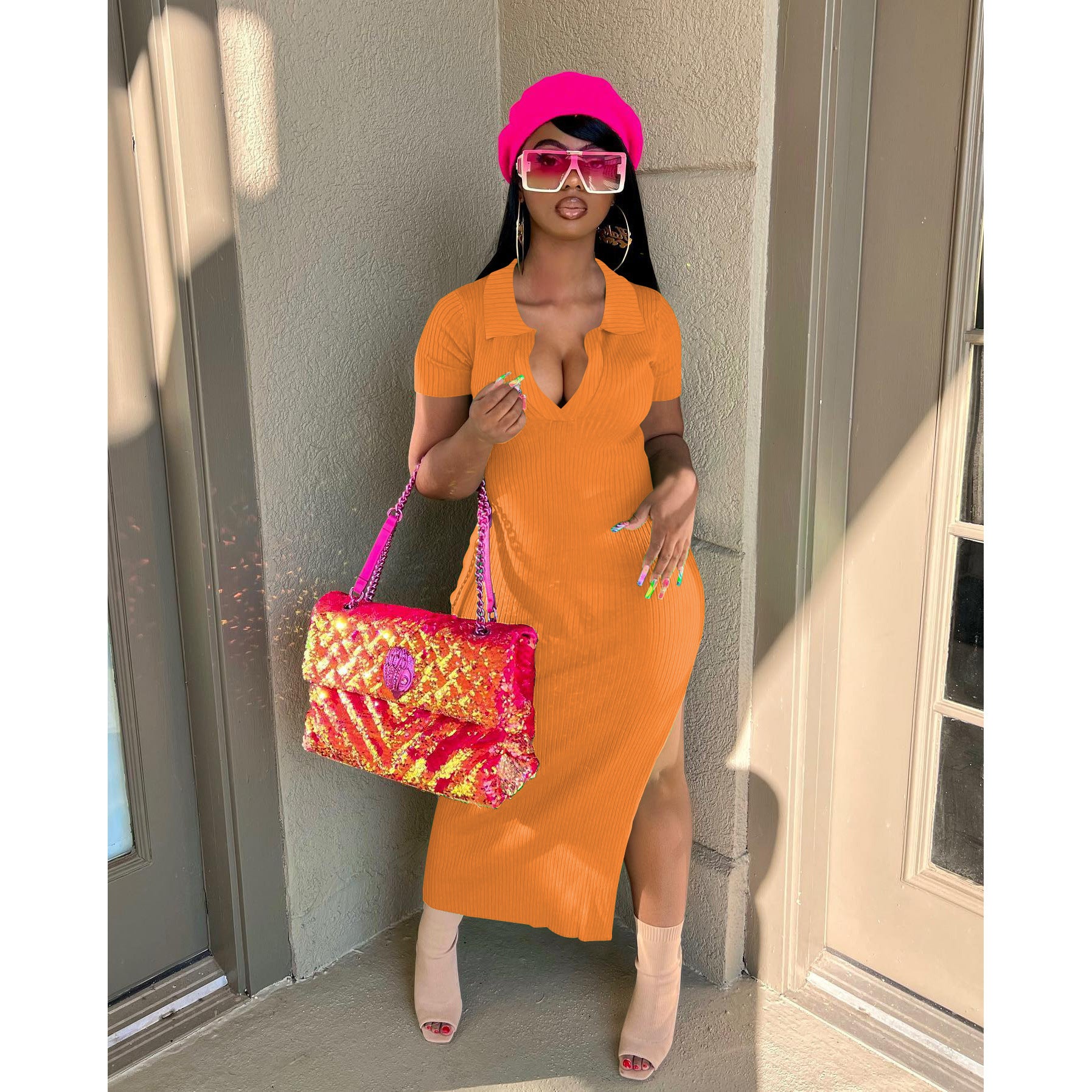 • Load image into Gallery viewer, Sexy solid color pit strip long dress(AY1819)