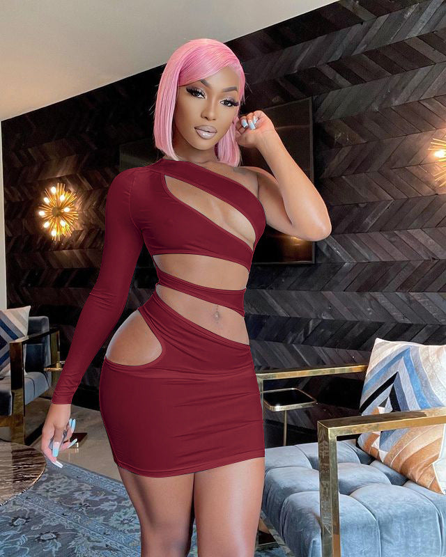 Single Sleeve Sloping Shoulder Slim Dress(AY2276)