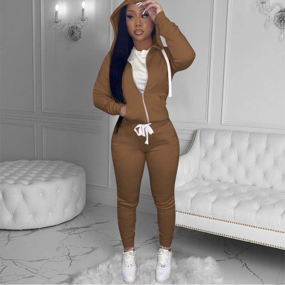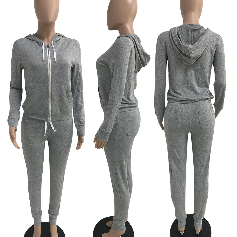 Hooded sweater drawstring two-piece suit(AY1377)