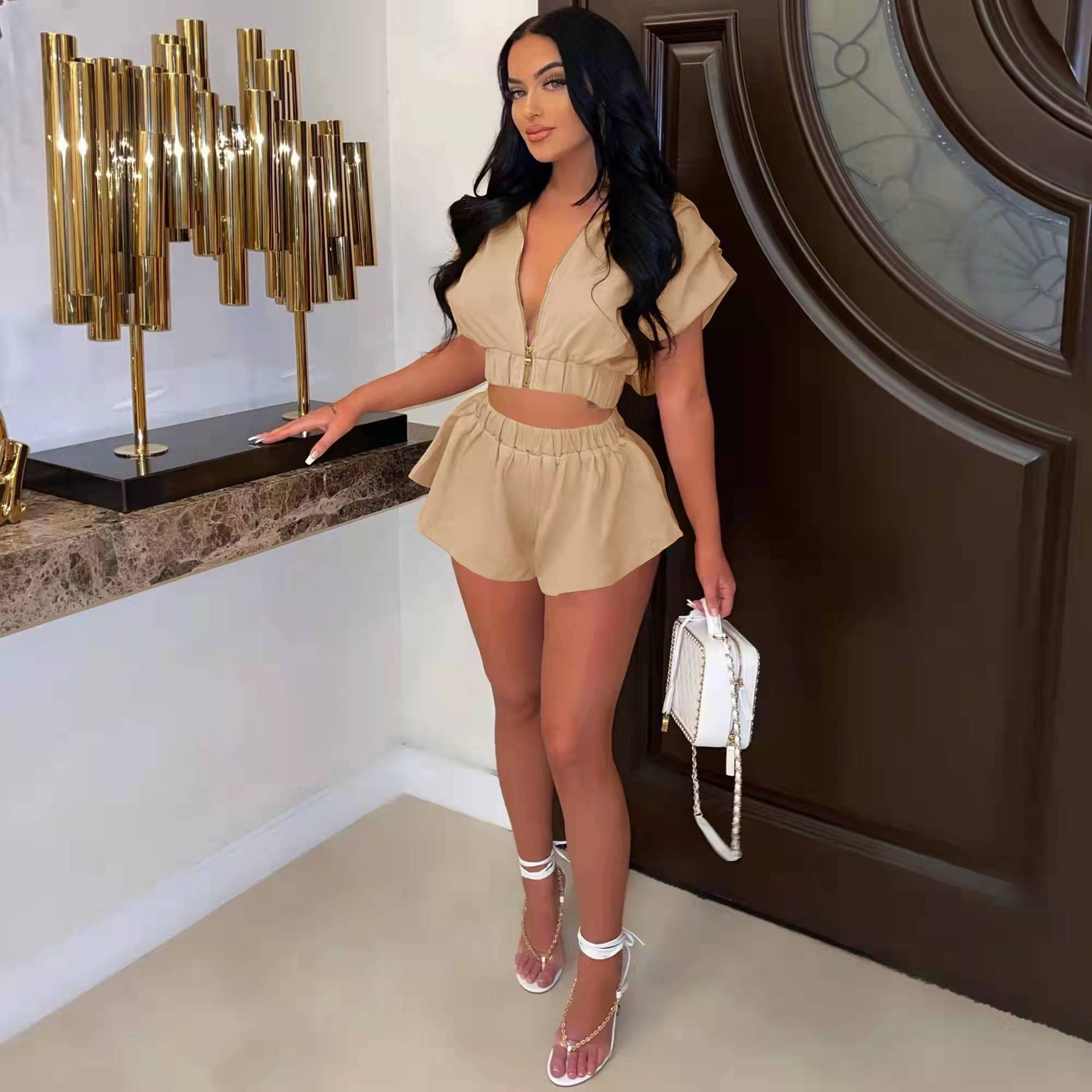 • Load image into Gallery viewer, Summer solid Zip Hoodie 2pcs set AY1930