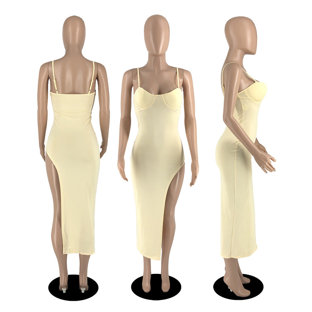 Suspender low cut backless split Hip Wrap Dress AY2177