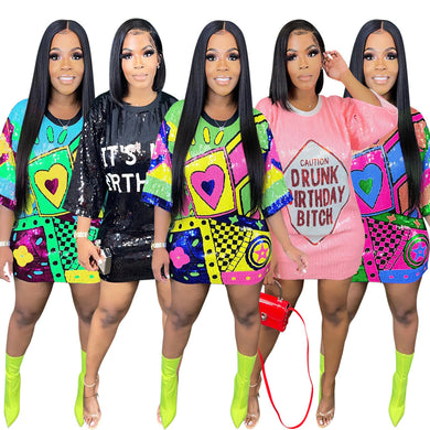 Sexy Lettering Sequin Pack Hip Dress(AY1747)