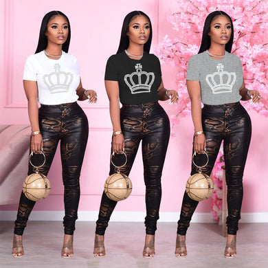 Fashion Round Neck Rhinestone Short Sleeve T-Shirt(AY1798)