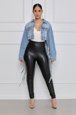 Back mesh fringed denim jacket women(AY1245)