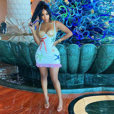 Backless print hot diamond suspender dress(AY2322)