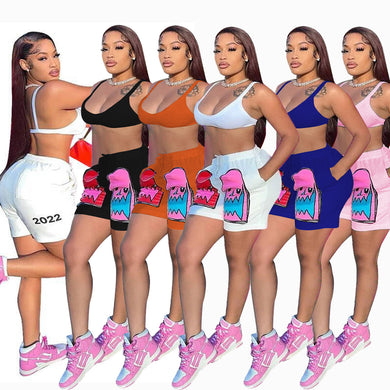 Casual Letter Print Short Sleeve Top Shorts Set(AY1828)