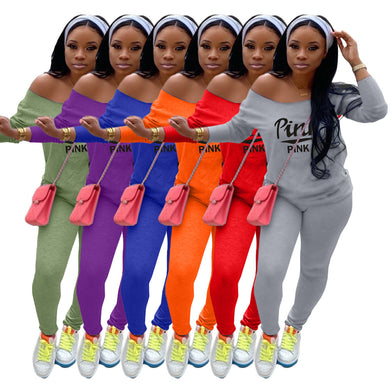 Casual solid color printed letter two-piece suit (AY2417)