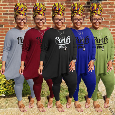 Casual Solid Color Printed Two Piece Set(AY2208)