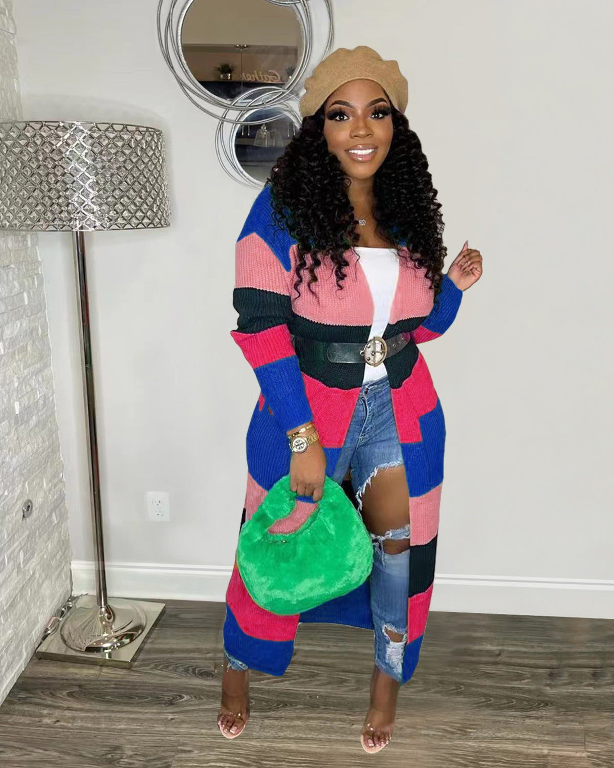 • Load image into Gallery viewer, Contrast hand knitted long cardigan coat(AY2535)