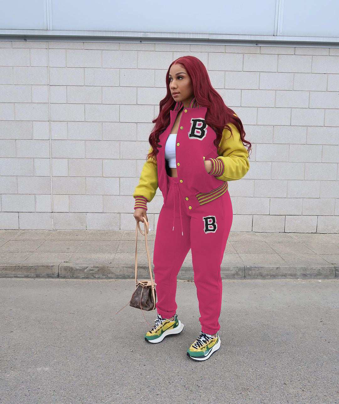 • Load image into Gallery viewer, Letter baseball jacket two-piece set(AY2557)