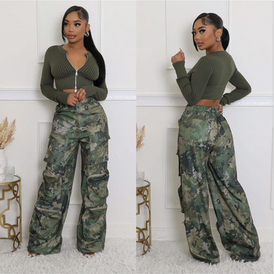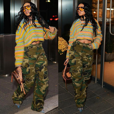 Casual camouflage printed workwear style straight bucket pants AY3324