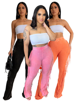Fringed tight fitting micro flared pants AY3587