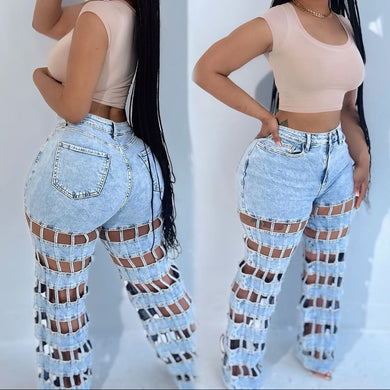 New street fashion hollow high waist straight pants AY3656