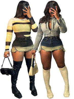Sexy spicy girl zippered high waisted jeans skirt AY3484