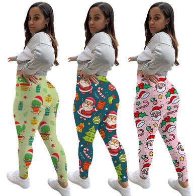 Christmas print sexy tight pants AY3290
