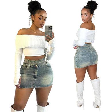 Slim fashion high elastic hip-hugging denim skirt AY3403