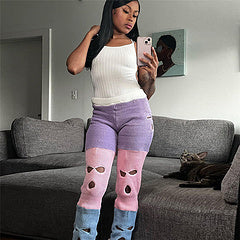Knitted contrasting distressed casual pants AY3322