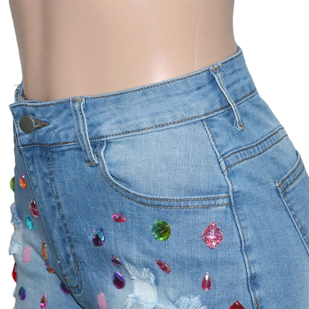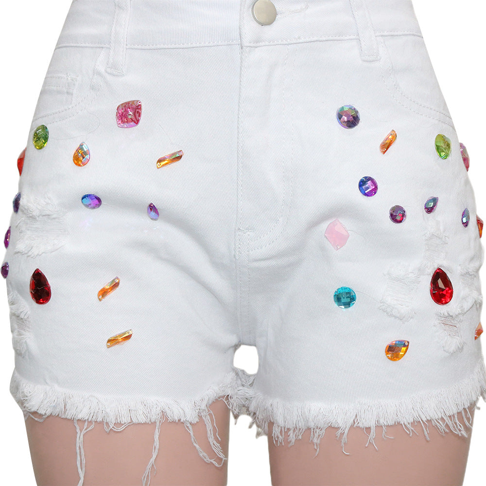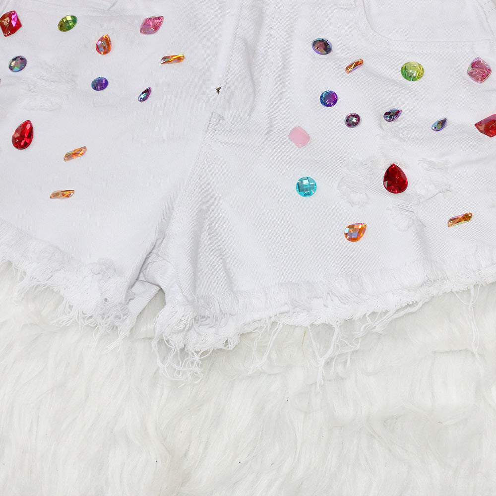 • Load image into Gallery viewer, Fashion colored diamond tassel denim shorts AY3047
