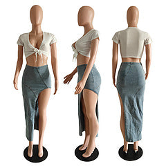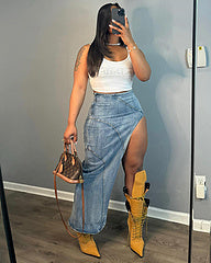 • Load image into Gallery viewer, Sexy high-slit stretch denim skirt AY3491
