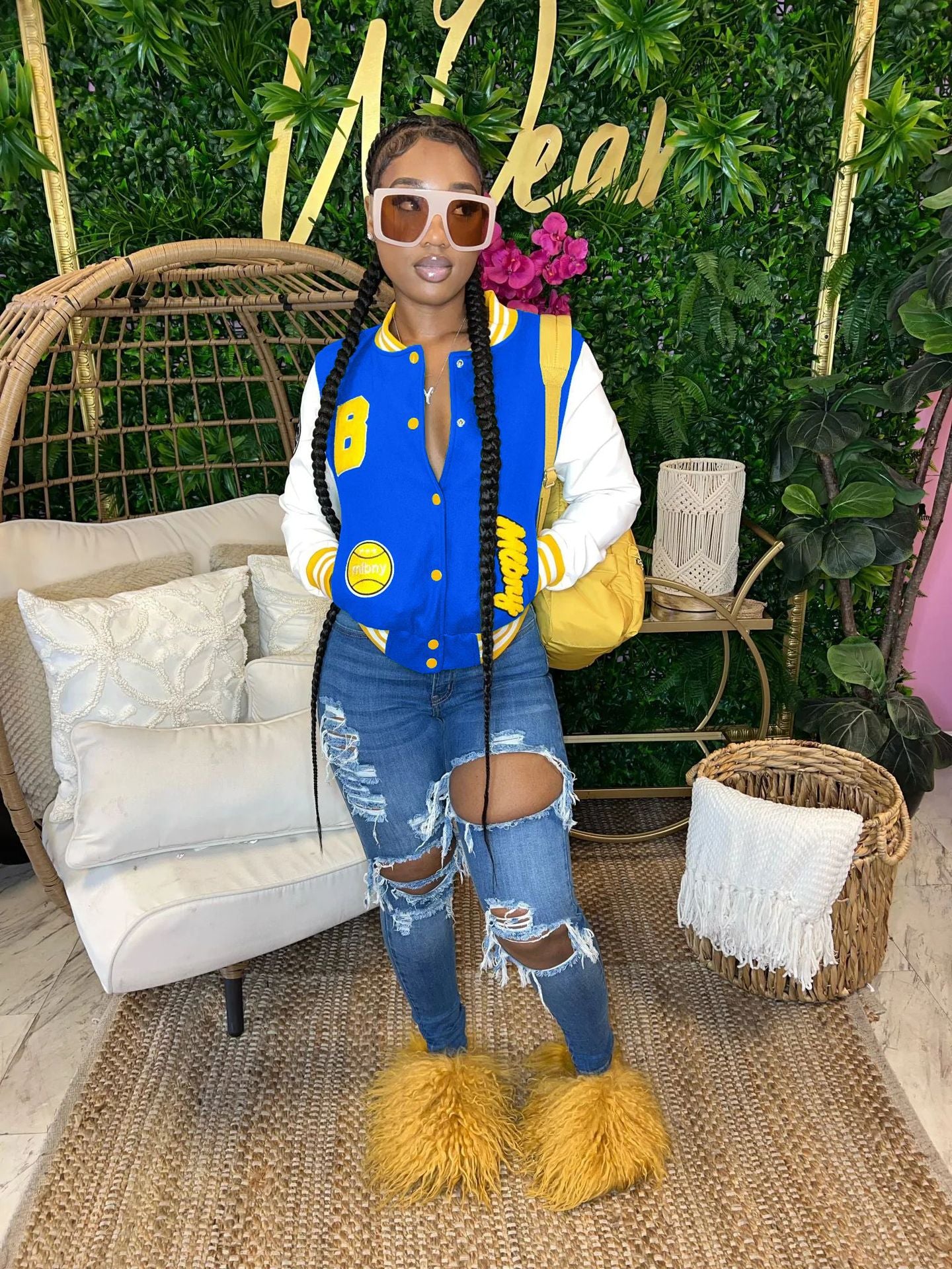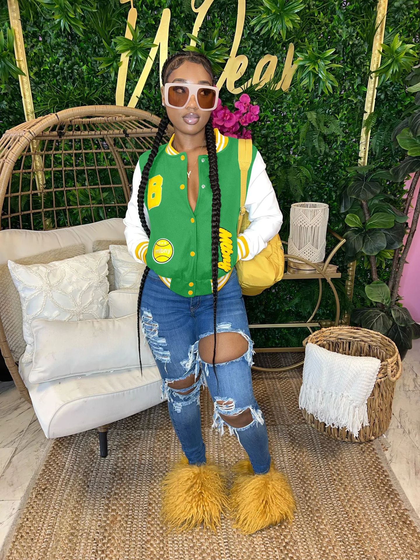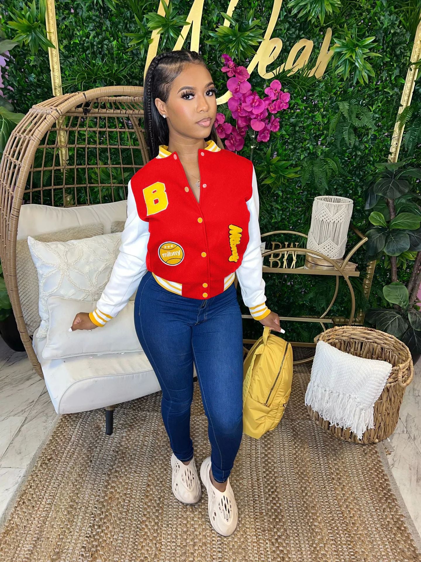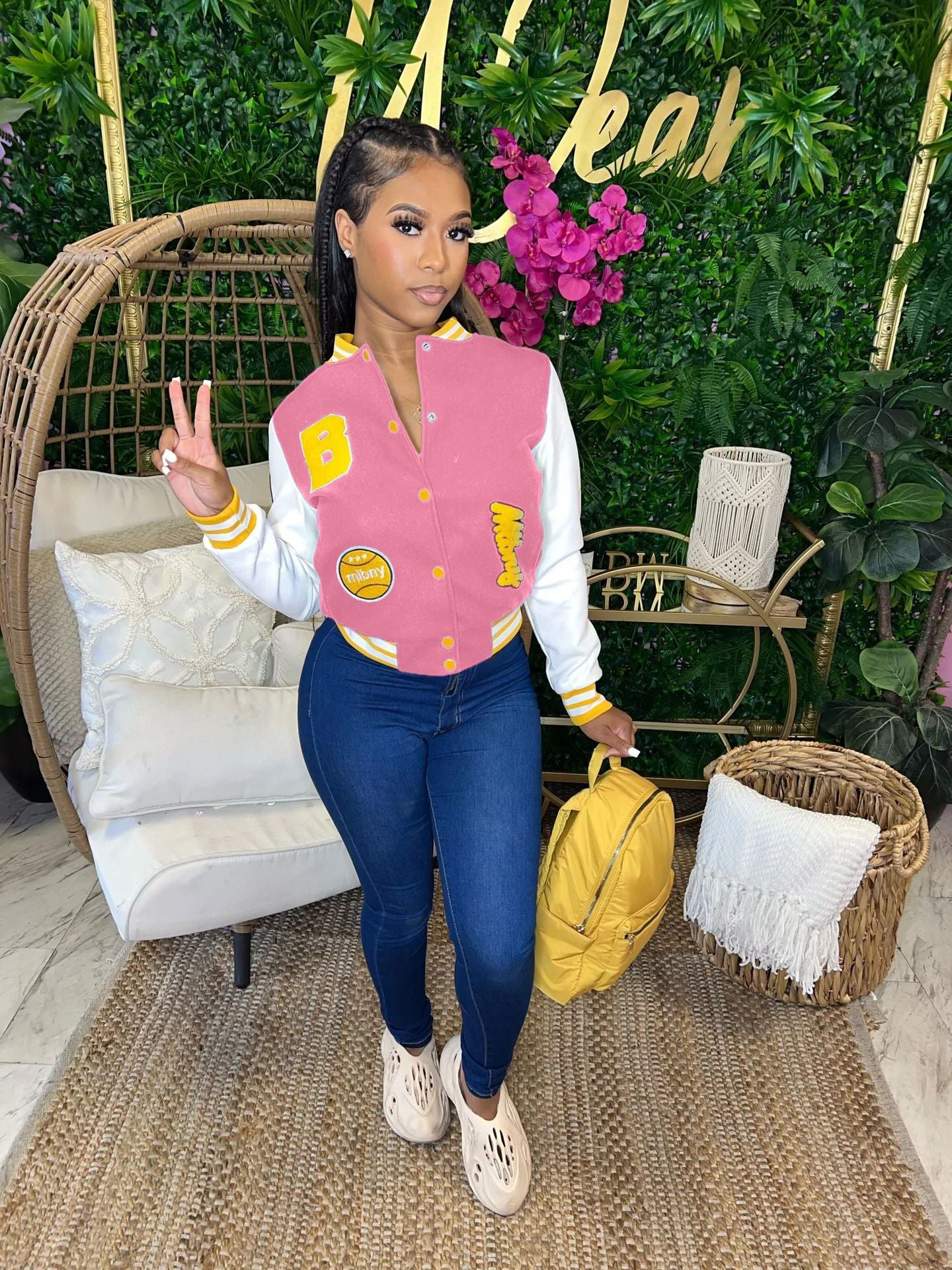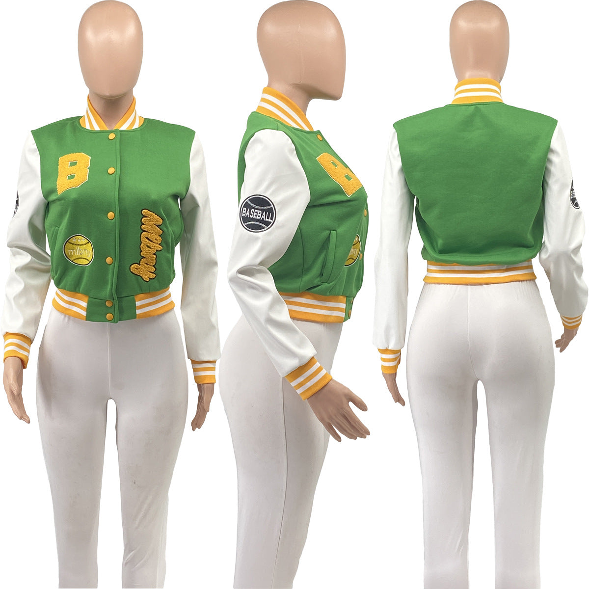 Embroidered PU long sleeve bomber jacket(AY2474)