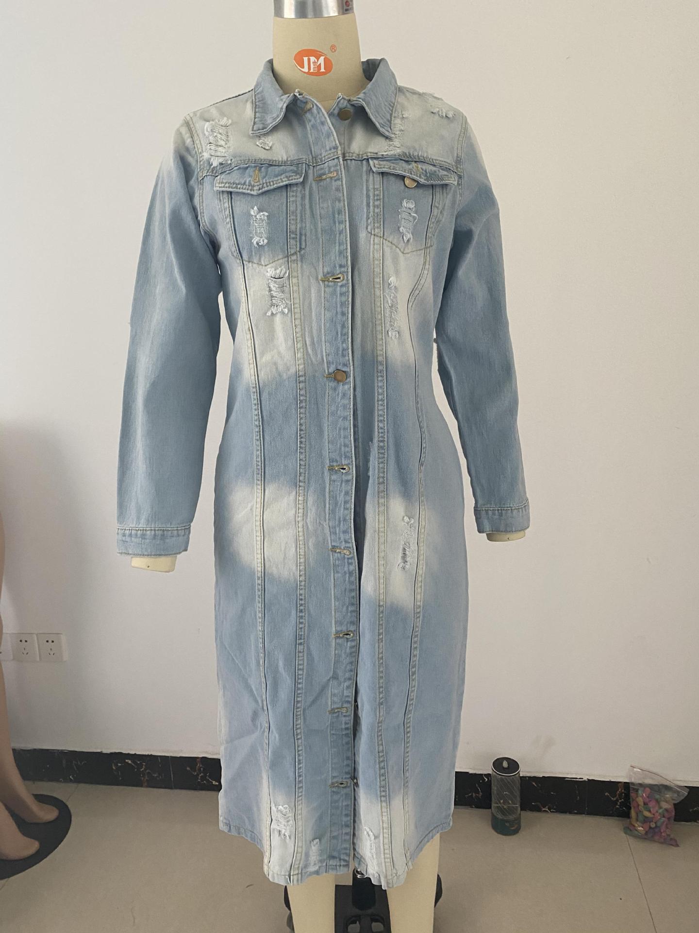 Ripped denim jacket denim long trench coat (AY1287)