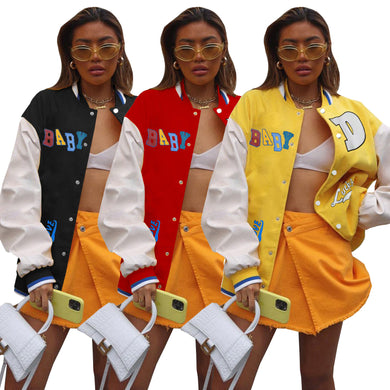 Fashion Letter Print Baseball Jacket(AY2403)