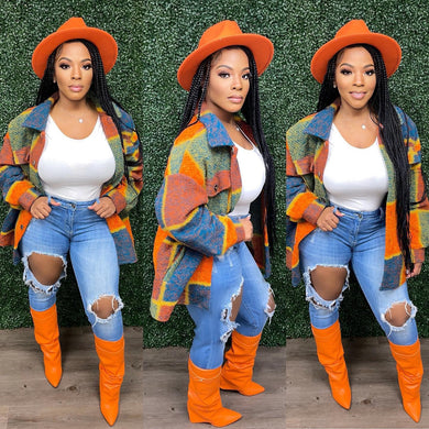 Fashion plaid long shirt jacket(AY1591)