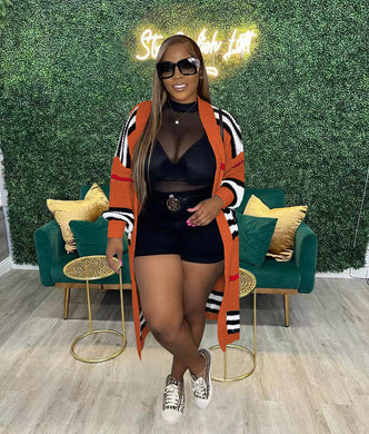 Cardigan long hand knitted striped coat(AY2433)
