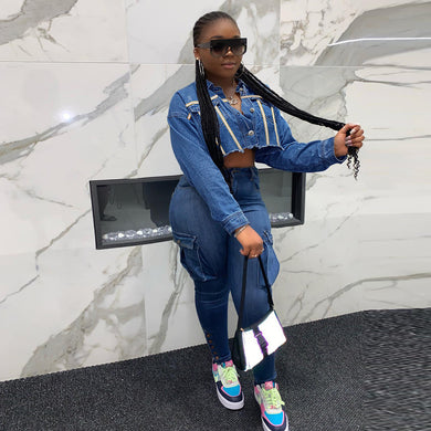 Fashion loose waist mid length denim jacket top(AY1805)