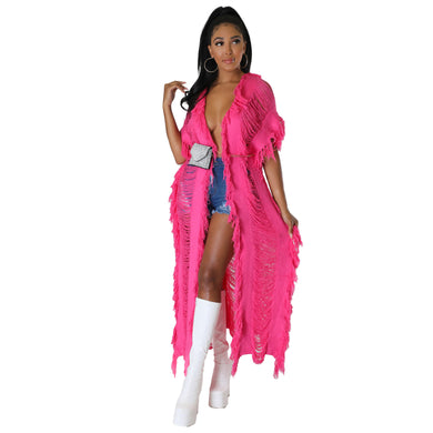 Cutout cardigan fringed knitted coat(AY2398)