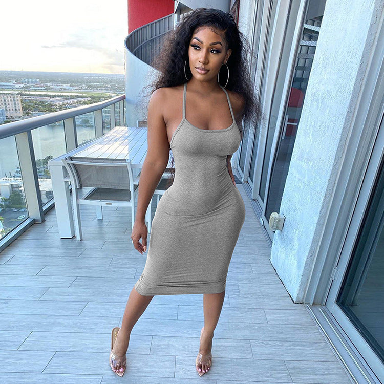 • Load image into Gallery viewer, Fashion solid color suspender dress AY2984