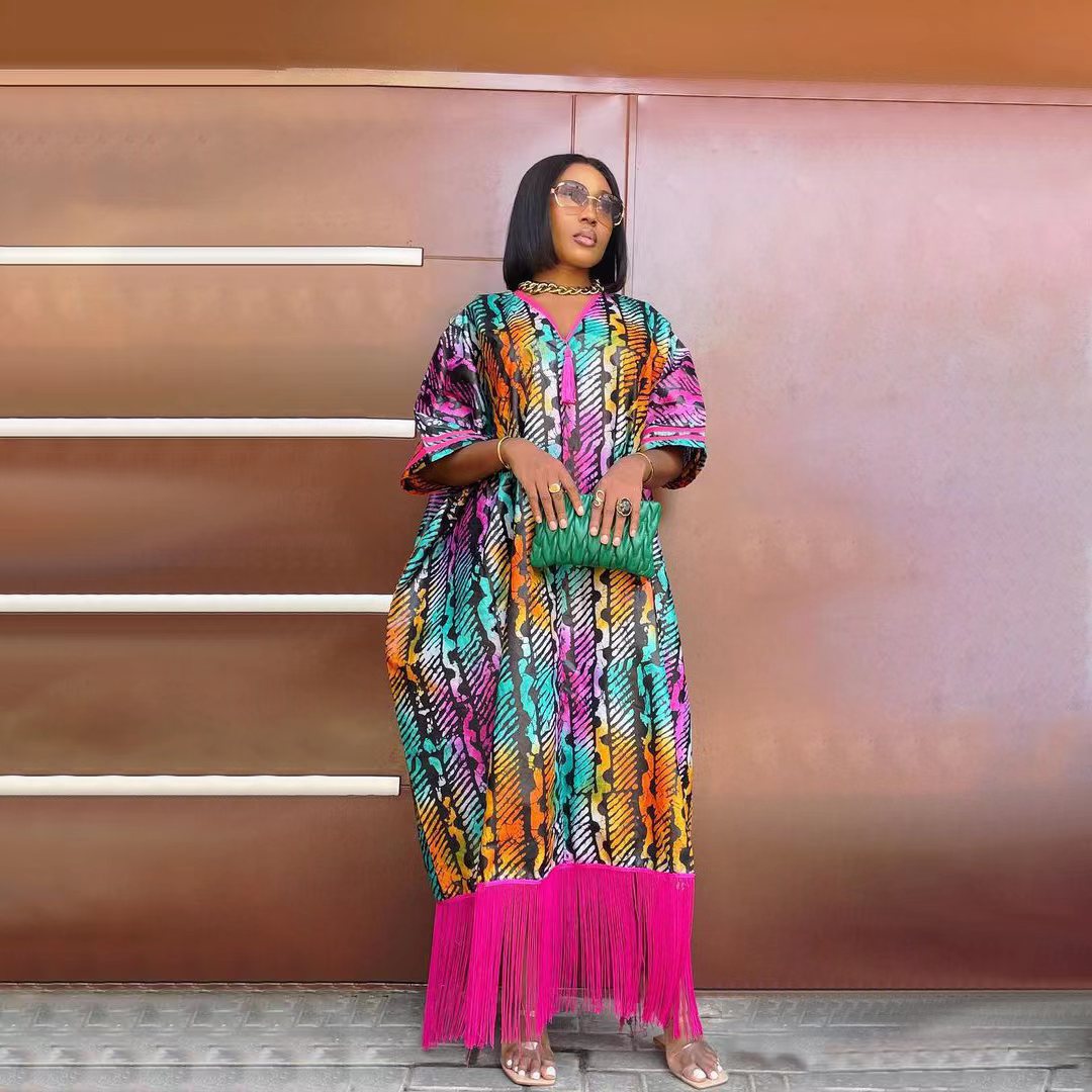 Fashion V-neck tassel printed dress AY3117