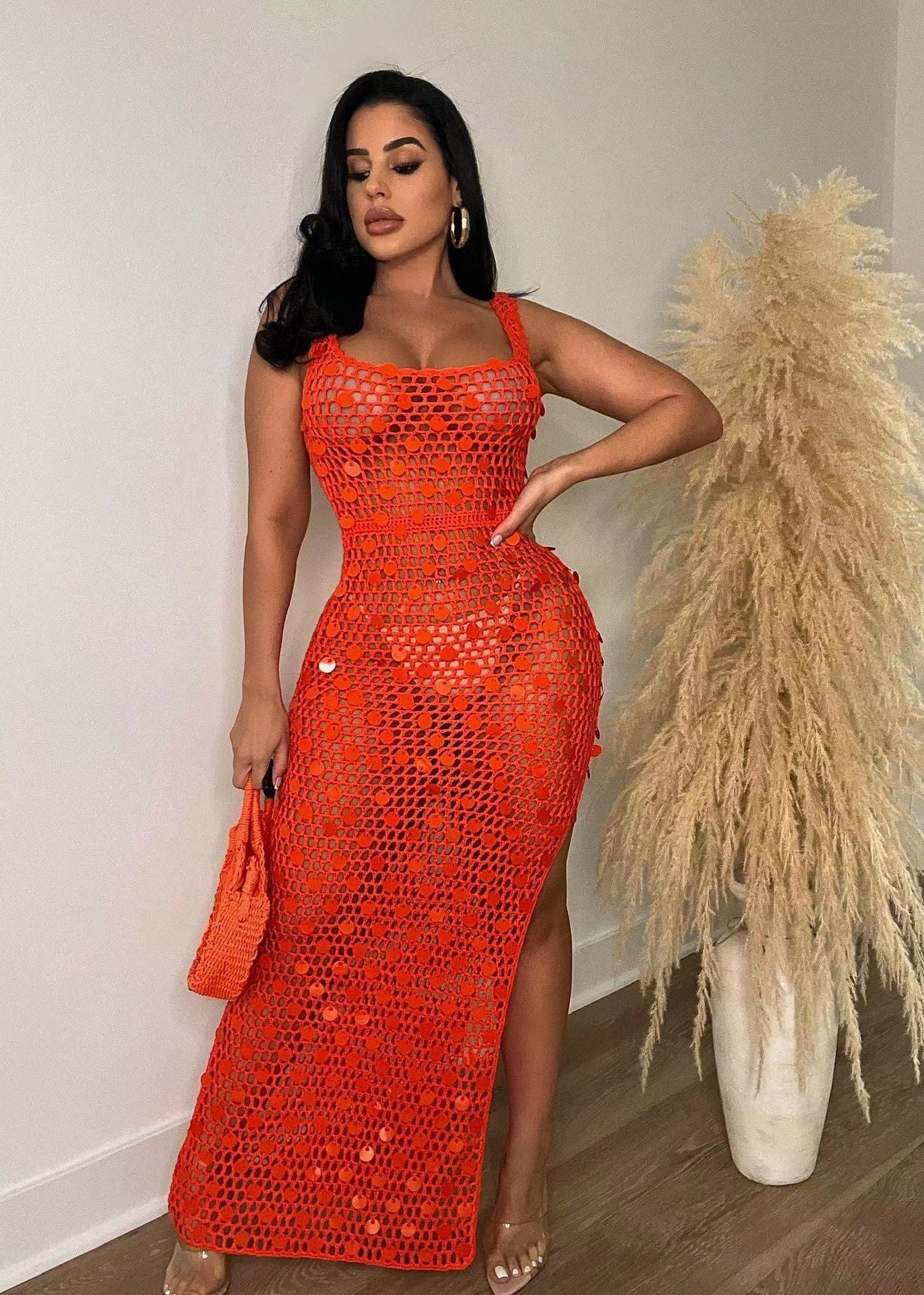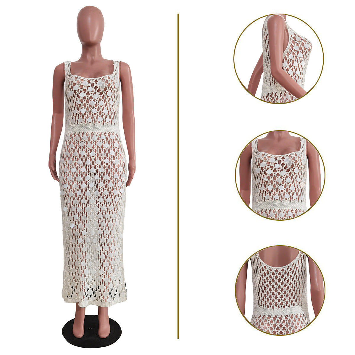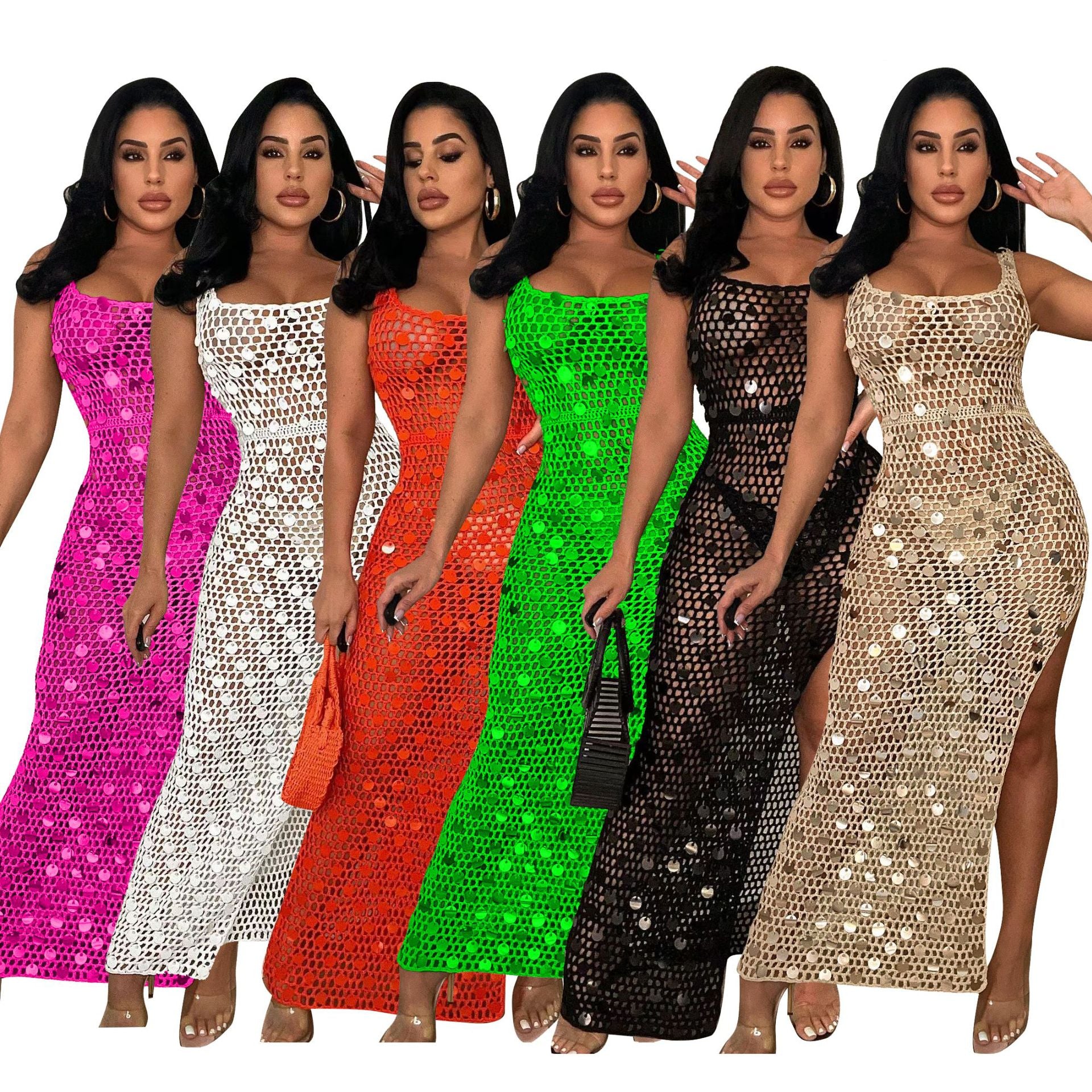 Sexy hollow out handmade knitted sequin vest beach skirt AY2963