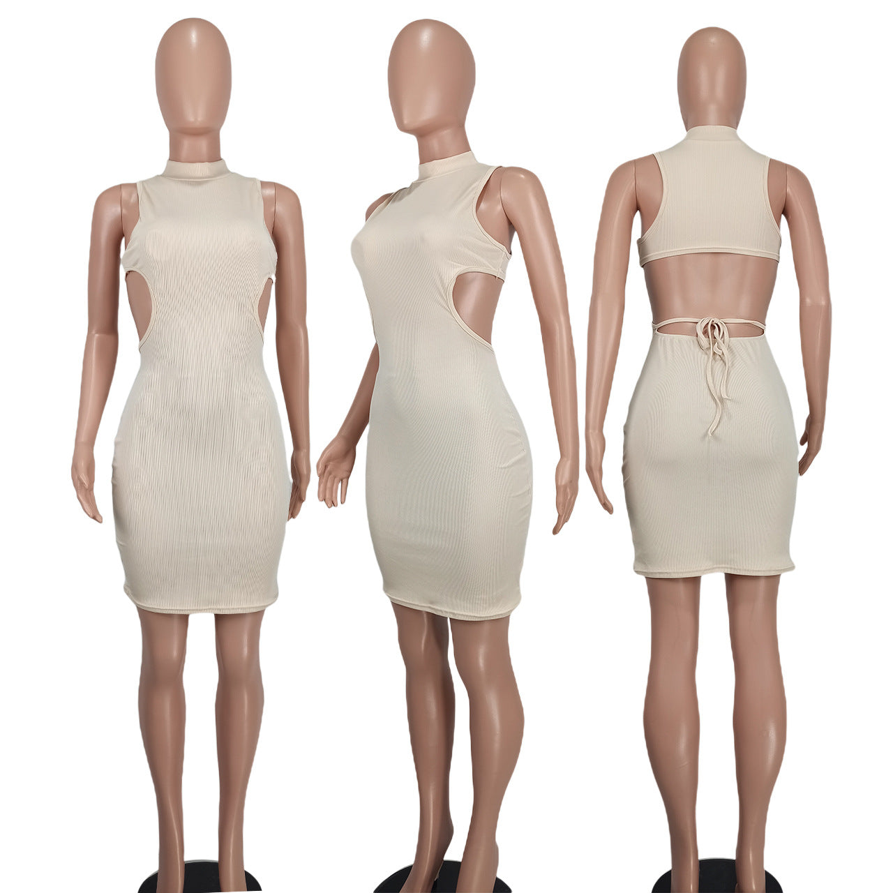 • Load image into Gallery viewer, Sexy threaded back open waist dress AY2950