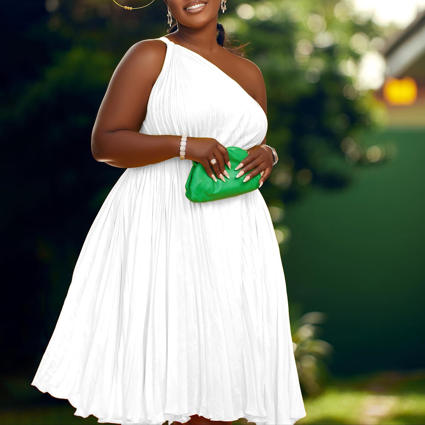 • Load image into Gallery viewer, Solid color pleated large swing dress AY3044