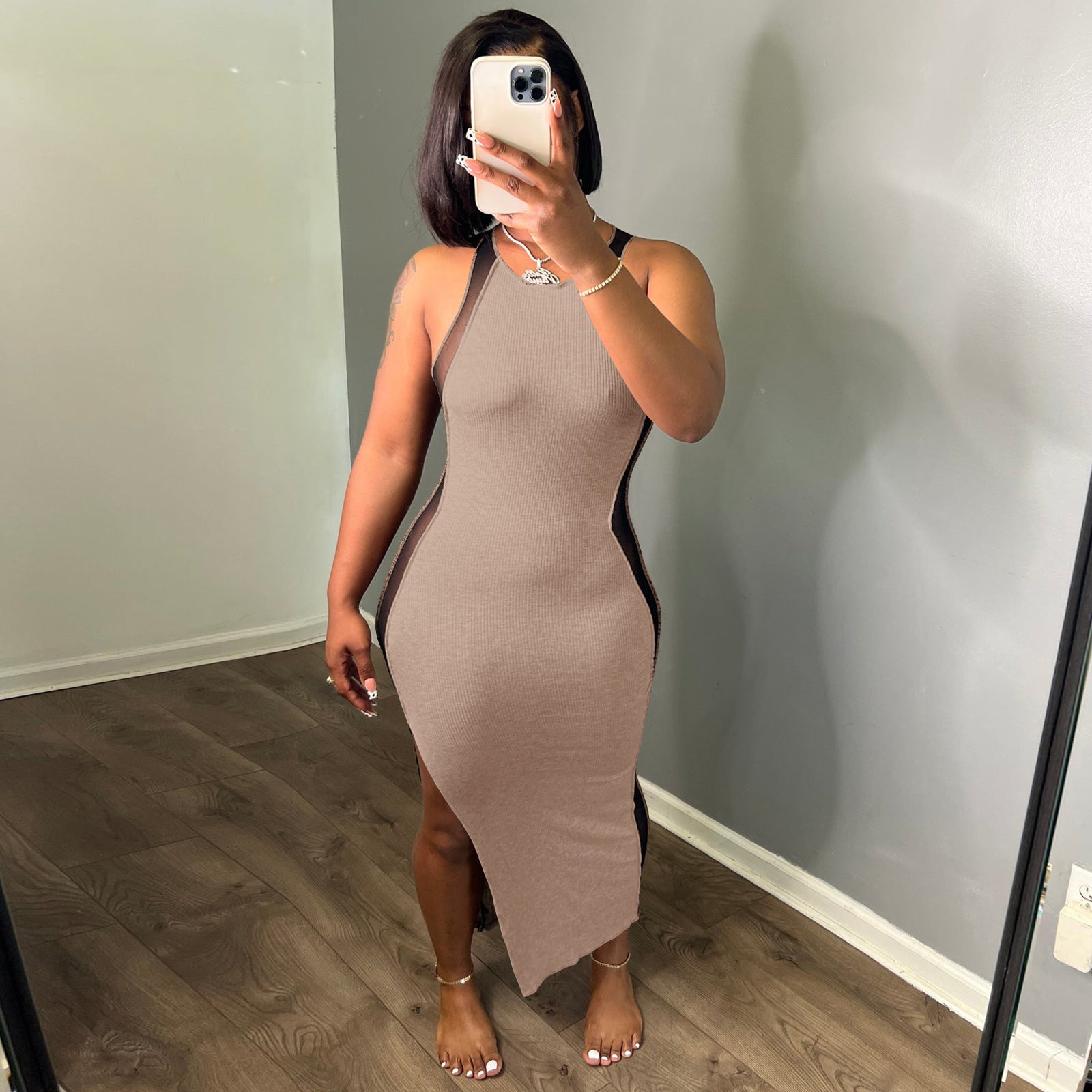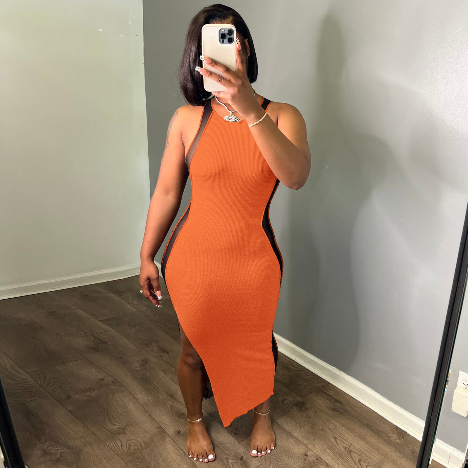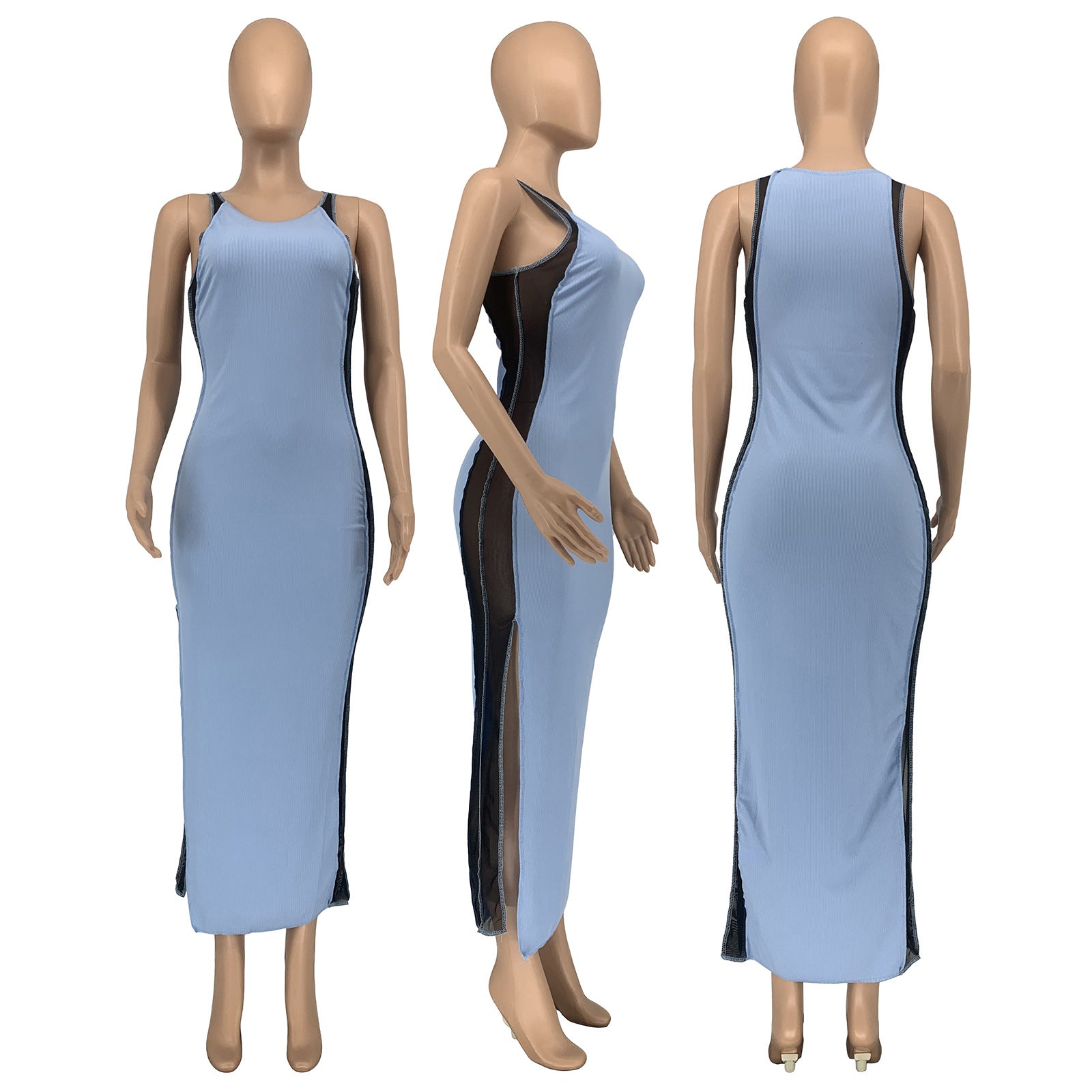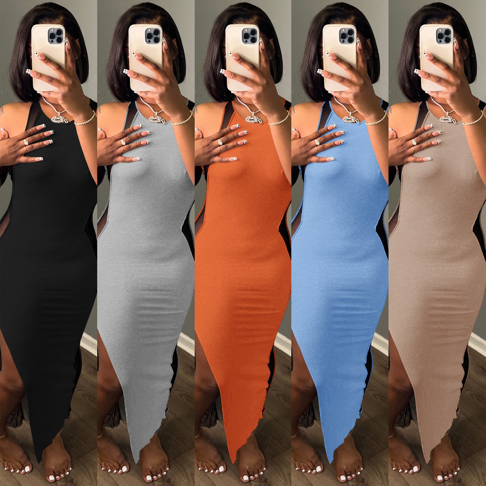 • Load image into Gallery viewer, Solid color sexy split dress AY2937
