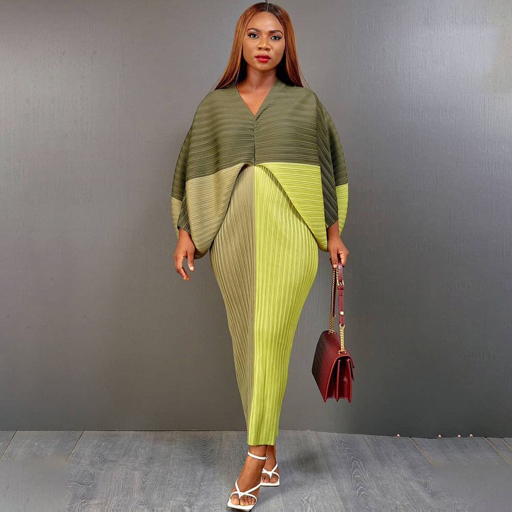 • Load image into Gallery viewer, V-neck bat sleeve print dress(AY2612)